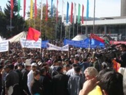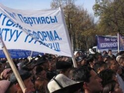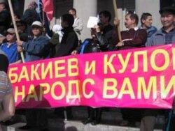Эски аянтта Бакиев-Кулов тандемин жактагандардын митинги бүгүн айрыкча күч алды. Митингге, байкоочулардын баамында, бер жагы беш миң, ар жагы жети миңдей адам катышууда. Алардын ичинде атайы түштүк аймагынан митингге катышуу үчүн келген жүздөгөн кишилер бар. Аянтта төрт боз үй, бир нече чатыр тигилген. Митингичилер Бакиев-Кулов тандемин жактаган ураан –чакырыктар менен чыгып сүйлөшүүдө.Митингдин катышуучулары Конституциянын жаңы долбоорун референдум аркылуу гана кабыл алууну жана оппозициядагы депутаттарды кылмыш жообуна тартууну талап кылышууда.