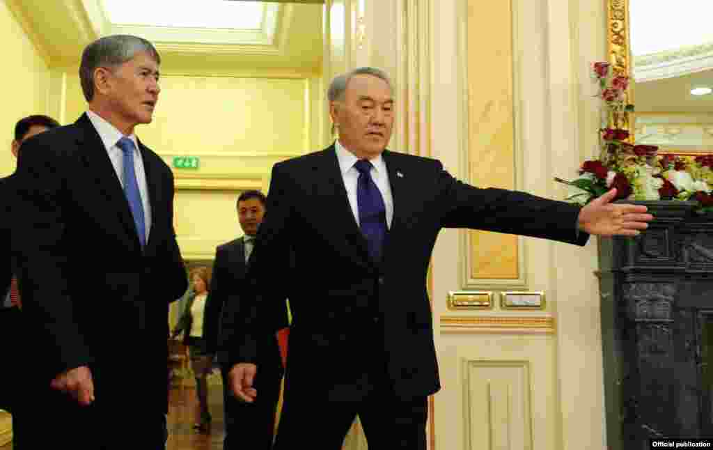Кыргызстандын президенти Алмазбек Атамбаев 10-майда Казакстанга иш сапары менен барды. Расмий жолугушуулардан кийин казак президенти Нурсултан Назарбаев Атамбаевге Астана шаарын көрсөттү.