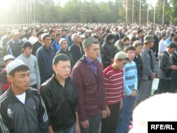 Бишкекте эски өкмөт аянтында Орозо айтка арналган майрамдык намазга эл көп келди. Бул жерге жыйналган мусулмандарды мамлекеттик катчы Досбол Нур уулу куттуктап сөз сүйлөдү.