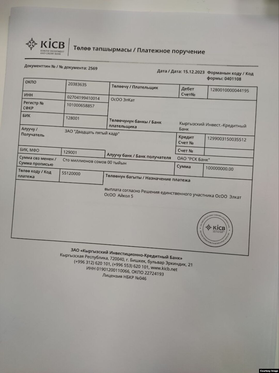 Мултимедиа "Айкөл-5" компаниясынын "25-кадр" компаниясына акча которууларынын дүмүрчөктөрү 13-Февраль, 2025 Пикирлерди көрүңүз