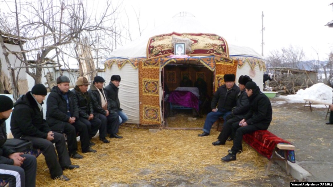 Сузак районундагы Жерге-Тал айылынын тургуну Абдыманап Сатыбалдиевдин үй-бүлөсү менен туугандары, куда-сөөгү, айылдаштары жана тааныш-билиштери бул күнү пенсиядагы бул кишинин кызы Толгонай Сатыбалдиеванын денесин жерге беришти.