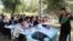 Кара-Суунун Кыргыз-Чек айылындагы окуучулар ачык асман алдында билим алып жатышат.